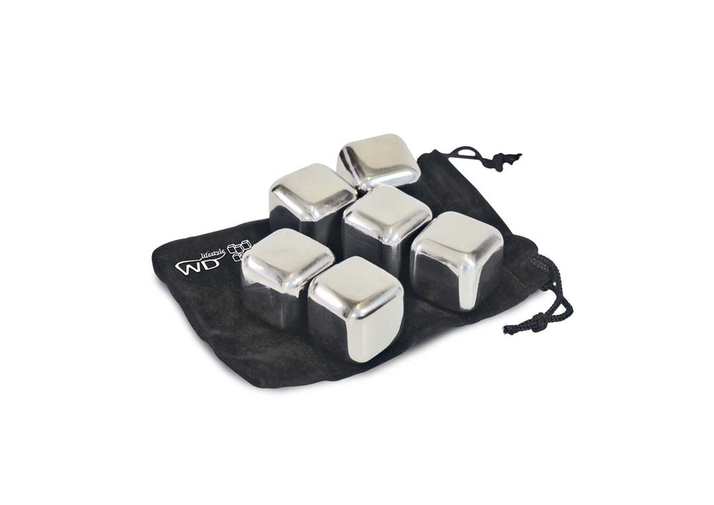 Set 6 cubetti raffredda drink riutilizzabili in Acciaio inox con pratico sacchetto in velluto nero. Questi cubetti manterranno il tuo cocktail sempre fresco e non annacquato. Per un corretto utilizzo riponi i cubetti in freezer per min 2 ore, una volta raffreddati utilizzali nei tuoi cocktail. Lavabili in lavastoviglie.
