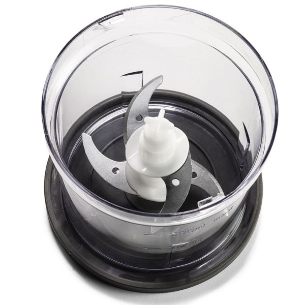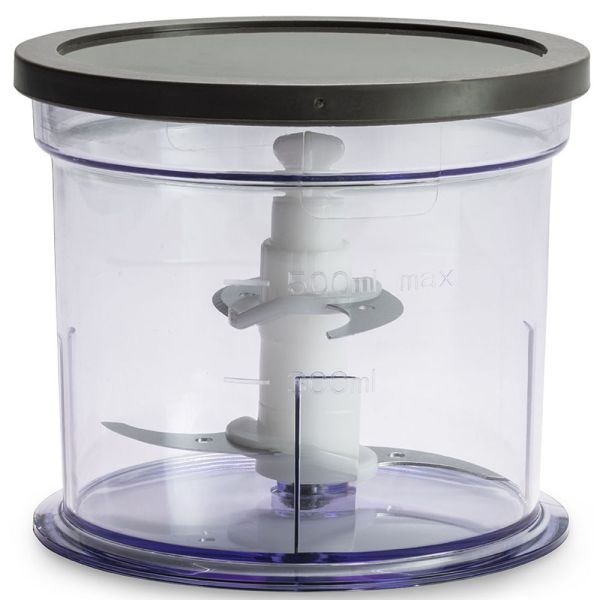Composizione | 1 corpo tritatutto, 4 lame in acciaio inox, 1 coperchio, 1 bicchiere in plastica da 0,5L |