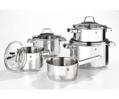 La batteria è composta da 5 pezzi, tutti dotati del proprio coperchio in vetro: 3 pentole rispettivamente di diametro 16, 20, 24 cm, una casseruola diametro 20 cm e una casseruola a manico lungo cm 16. È dotata del fondo Transtherm, che assorbe facilmente il calore e lo trattiene anche una volta spento il fuoco. Può essere utilizzata in tutti i tipi di fornelli, comprese le piastre a induzione. Lavabile in lavastoviglie, facile da pulire, adatte al forno, insapore e resistente agli acidi. Una serie di pentole che assicura le massime prestazioni in cucina, progettate per durare nel tempo. Realizzata da WMF.